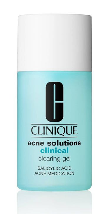 The tried and true, will and have repurchased dozens of times, is Clinique Acne Solutions Clearing Gel. This is an awesome salicylic spot treatment that doesn’t dry out my already dry, sensitive skin, and clears up breakouts in just a few days.