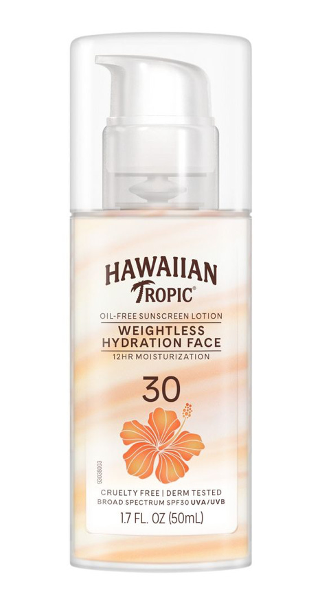 My all time forever favorite is Hawaiian Tropic Weightless Hydration Face. It does have a strong tropical scent that may not work for everyone, but I don’t mind it. I love that it’s non-comedogenic. I love that it’s glowy. I love her. Period.