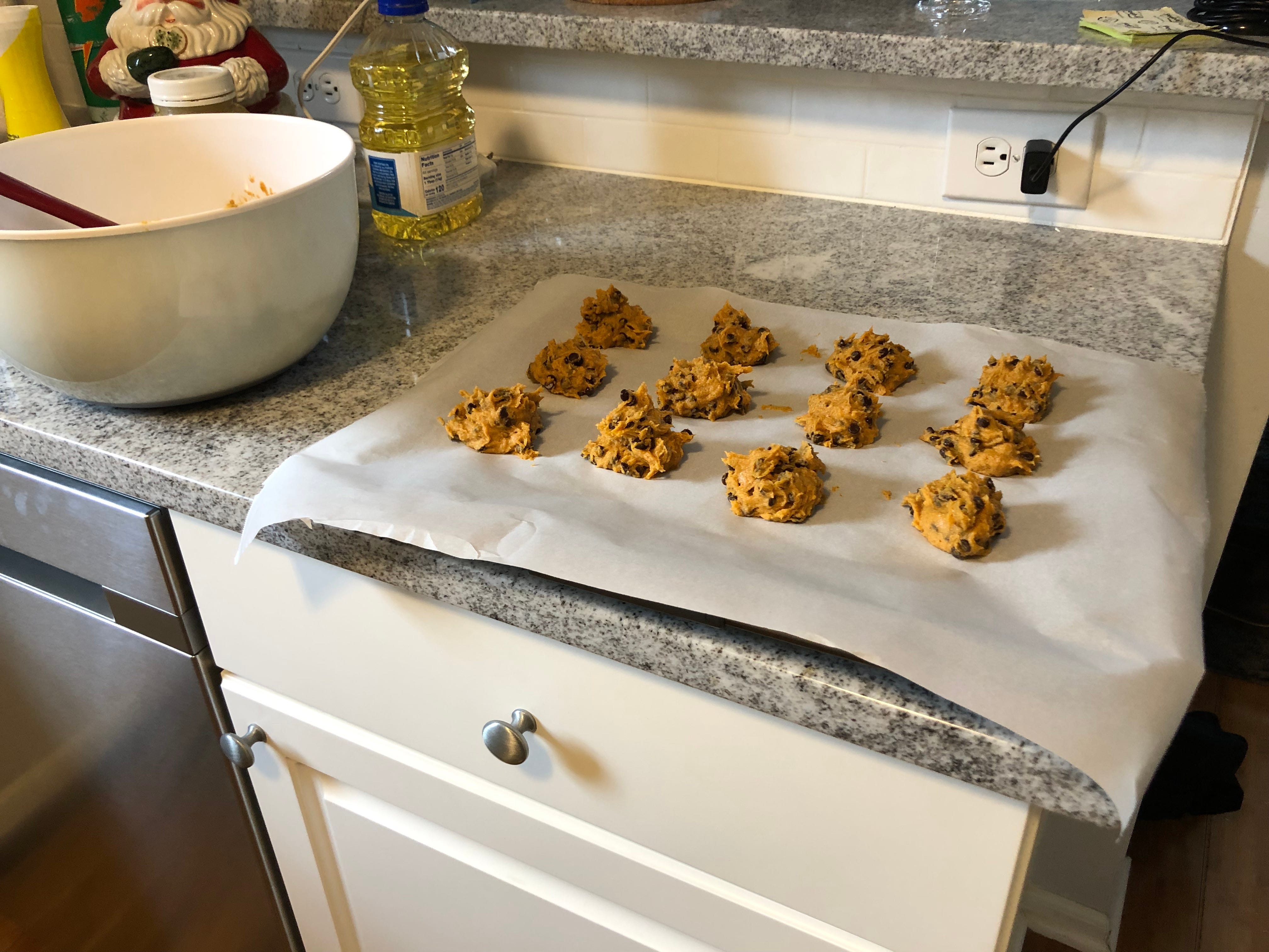 While the dough ‘breaths’, line your cookie sheet with parchment paper.