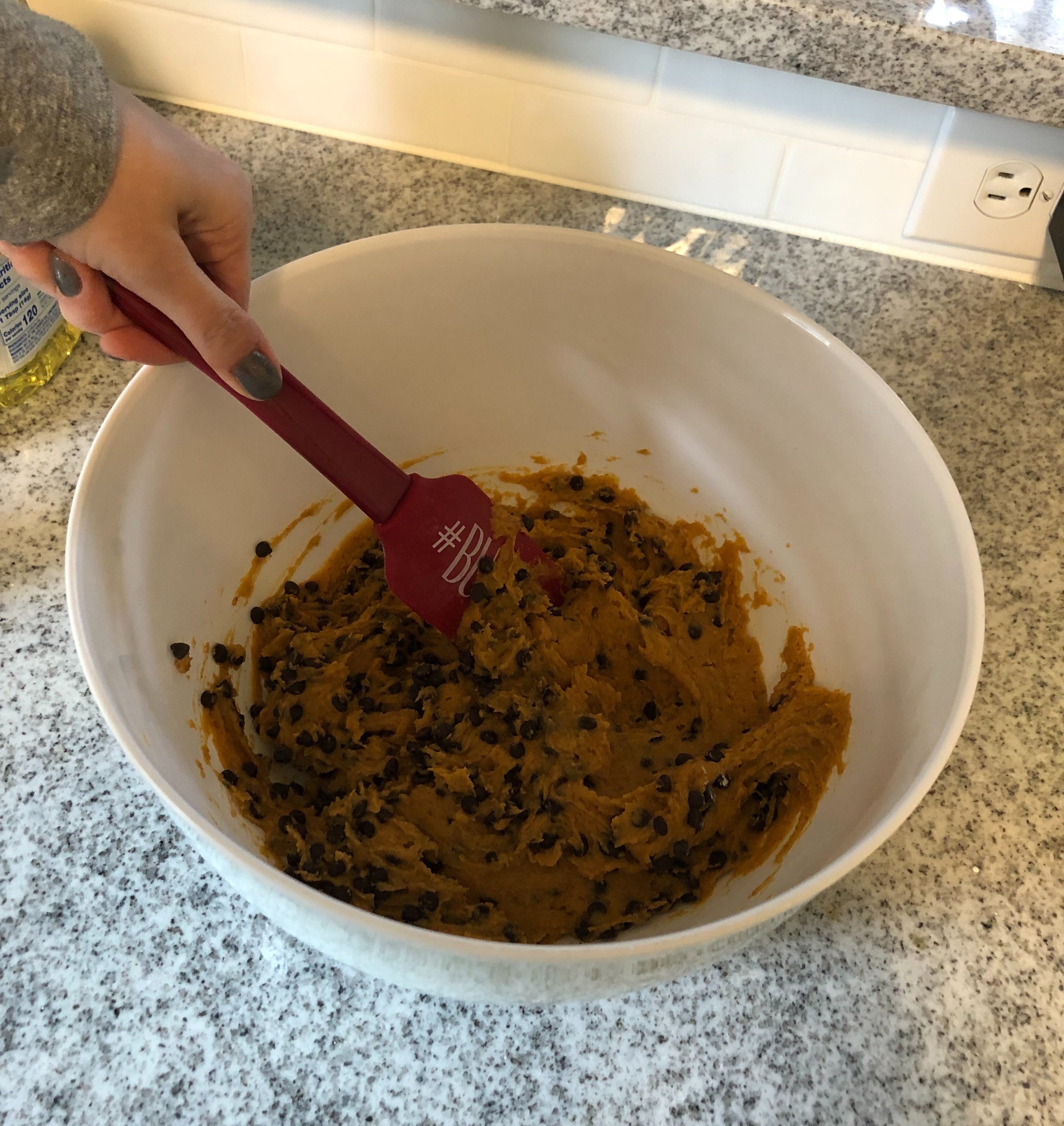 When your mixture looks thick and smooth, fold in your chocolate chips.